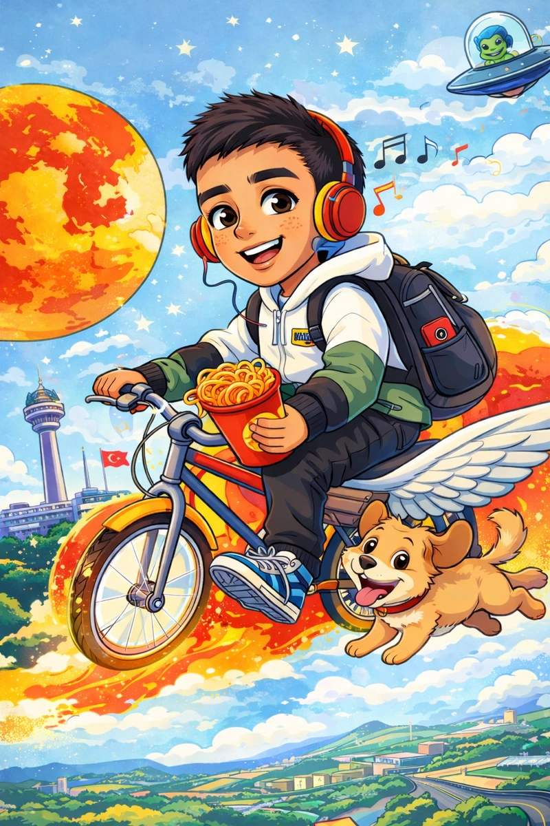 Miraç bu çalışmada kendisini yansıtan bir dijital avatar tasarladı. Oluşturulan avatar; ilgi alanları, tercihleri ve hayal dünyasına dair ipuçları taşır.