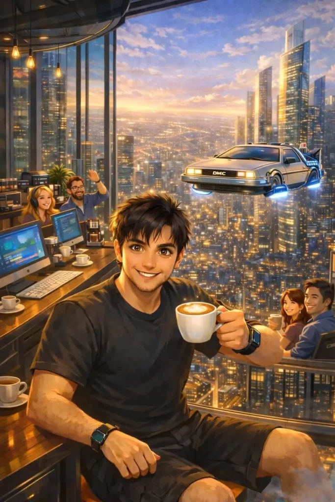 Hayalimdeki araba olan Geleceğe Dönüş zaman makinesi replikasını (Mr. Fusion’lı model) yaptırmış; ofisin önünde duruyor.