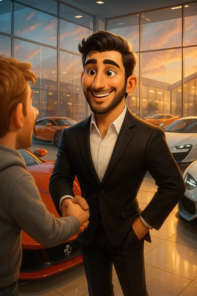 Bir müşteriyle sıcak bir şekilde el sıkışıyorsun, anlaşma sağlanmış.