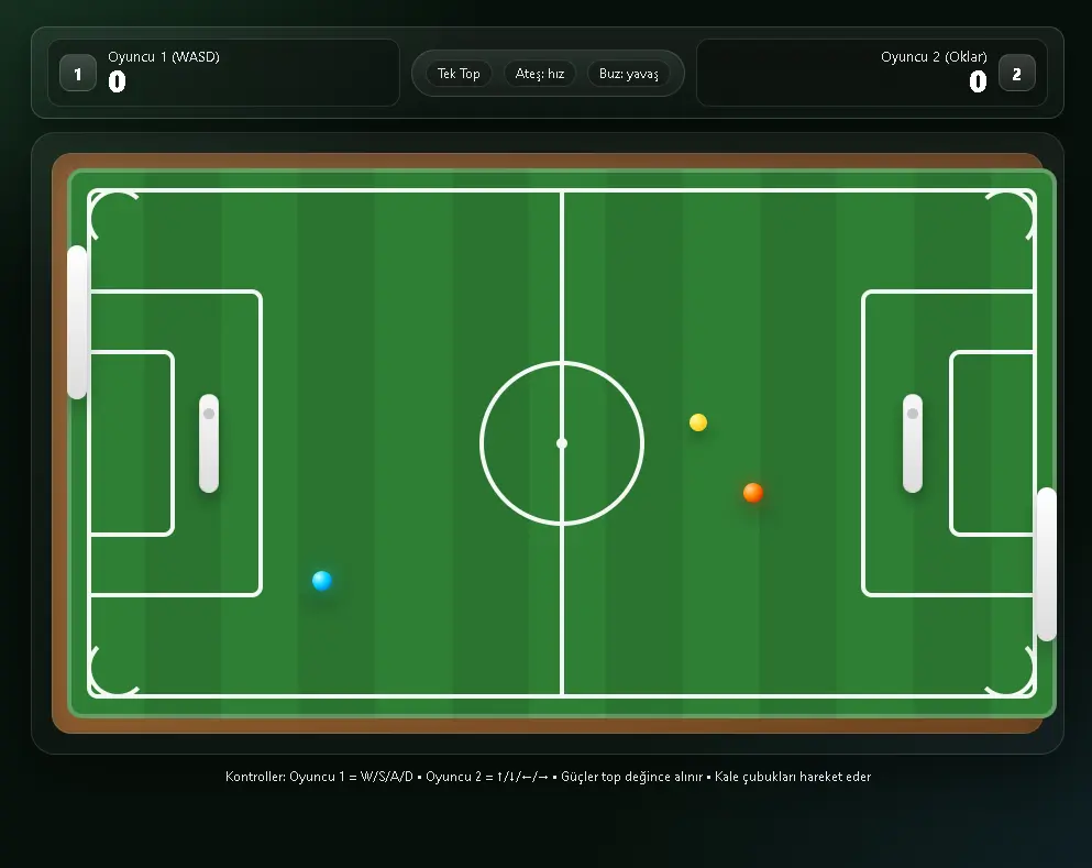 Poyraz’ın bitmek bilmeyen enerjisiyle kurgulanan bu yeşil sahada alışılmış kurallar yok, heyecan dorukta! Birden fazla topla aynı anda oyna, ateş ve buz gibi süper güçleri toplayarak avantaj sağla ve hareketli kaleleri ustaca aşarak rakibini mağlup et.